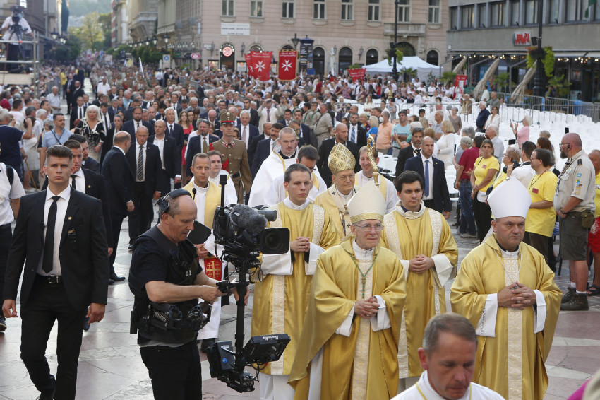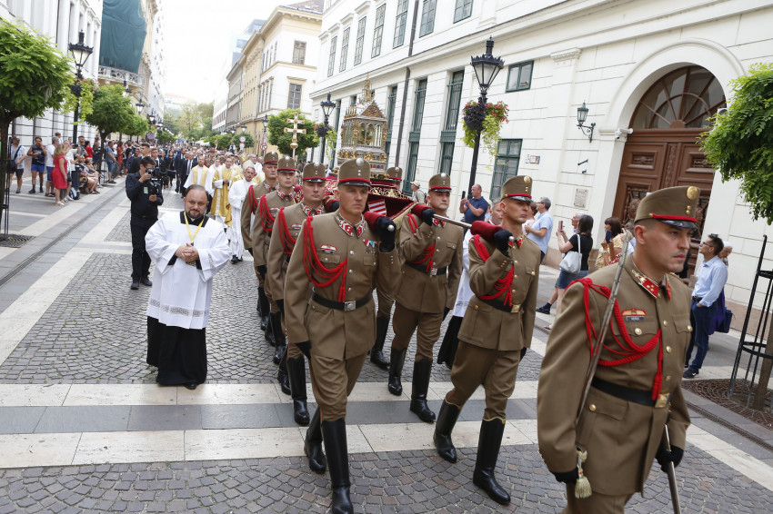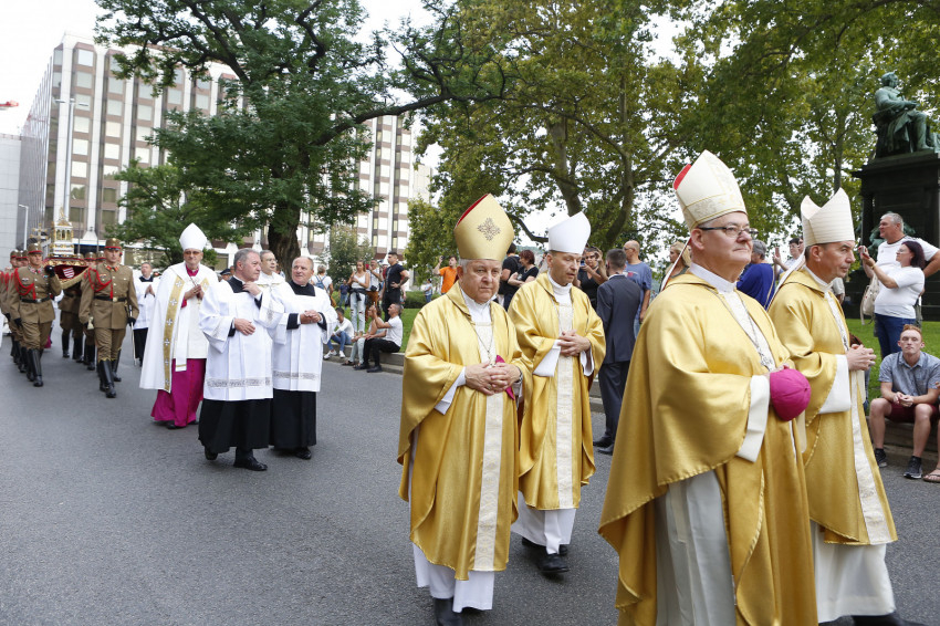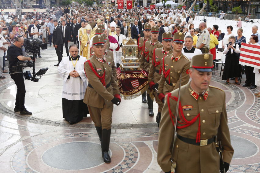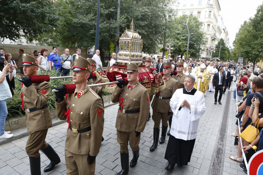 Az ünnepi szentmise végén megtartották a Szent Jobb-körmenetet. Az ereklye előtt a Katolikus Karitász és a Magyar Máltai Szeretetszolgálat tagjai és önkéntesei, a szerzetes- és lovagrendek képviselői, az apostoli élet társaságainak tagjai, a papság, valamint a plébániák zarándokcsoportjai vonultak.