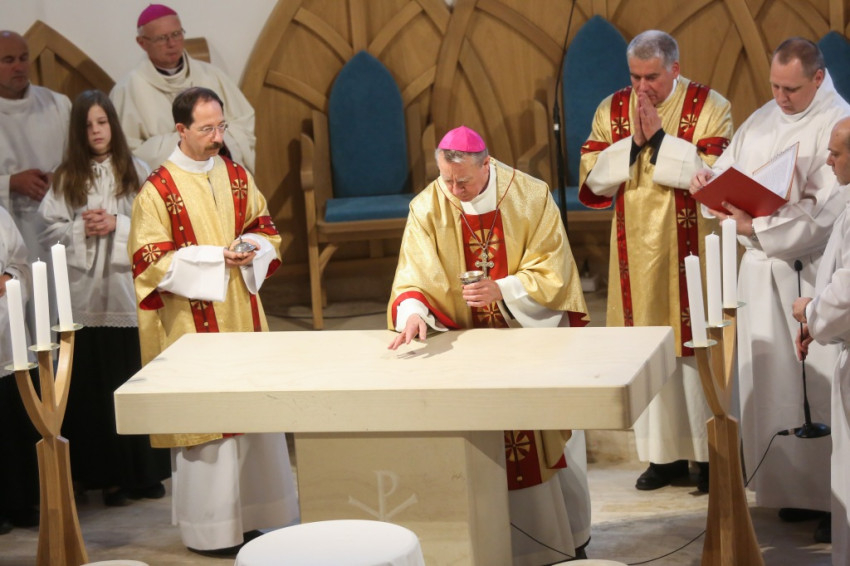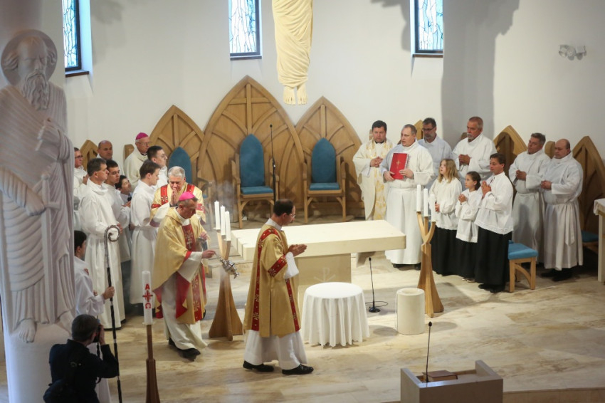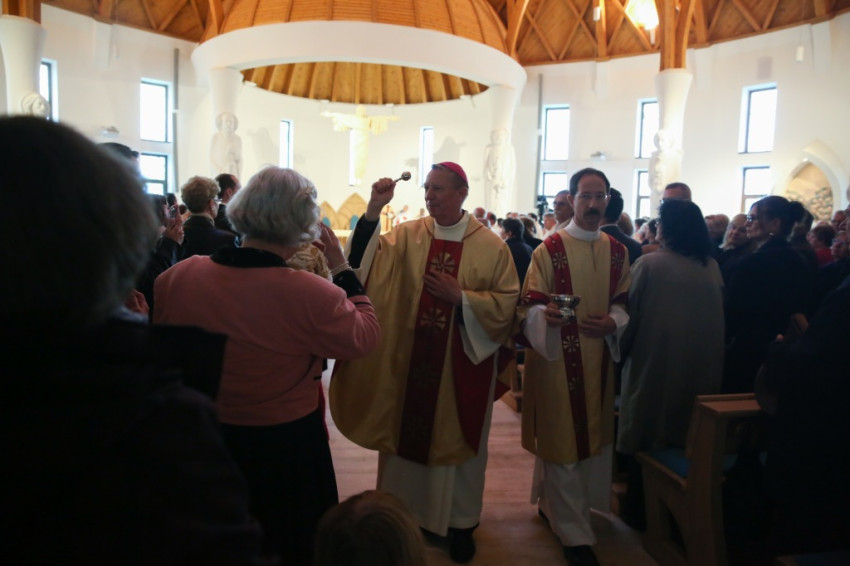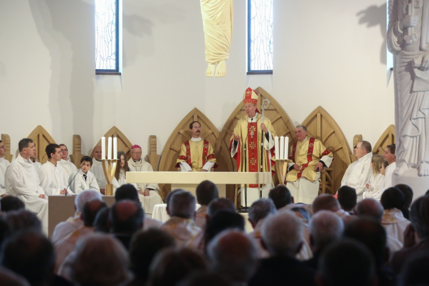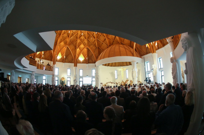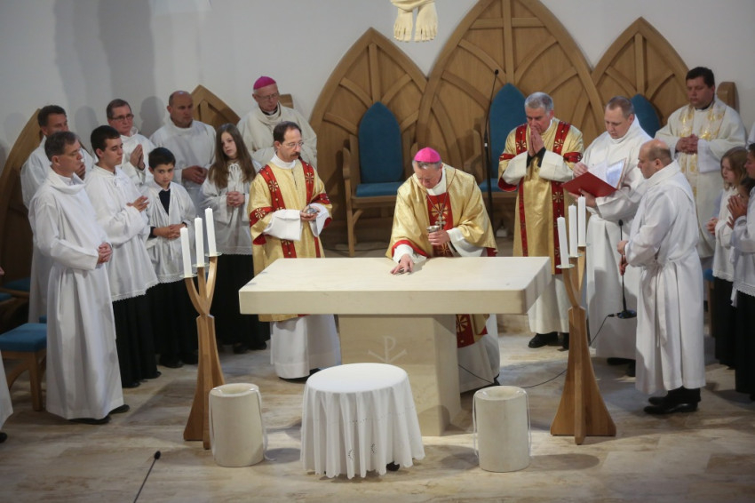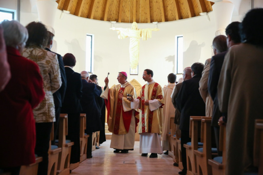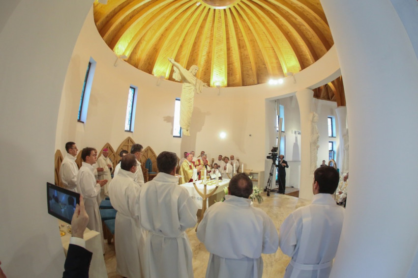 Az újonnan épült templom a mennyei Jeruzsálemet idézi föl – mondta a püspök –, ez a mi reménységünk, minden liturgiánkban ezt akarjuk átélni, az Istennel való nagy találkozást. Minden elővételező jelképe annak, amit Isten készít nekünk; az atyai ház ennek a templomnak a tükre.