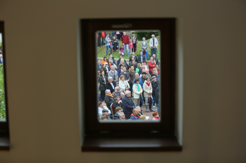 Pásztor Béla polgármester köszöntötte „a nap főszereplőjét”, Beer Miklós püspököt és az ünnep valamennyi résztvevőjét, majd felkérte a főpásztort, áldja meg először a felújított plébániaépületet, mely a megnövekedett egyházi élet színtere lesz a jövőben.