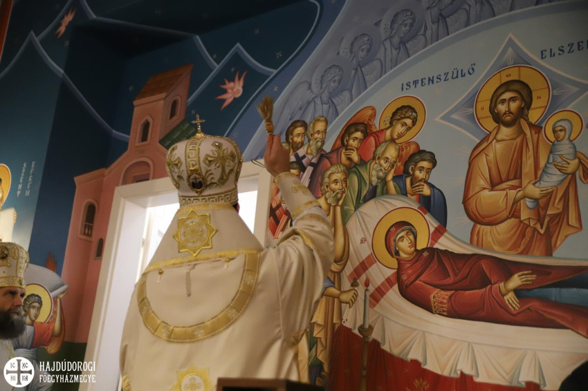 A Szent Liturgián Orosz Atanáz miskolci megyéspüspök mondott prédikációt, nem szokványos módon kezdve beszédét: „Szent István ünnepén nem egyszer diakónust szoktunk szentelni, mert a diakónusszentelés szövegében többször is szerepel Szent István első diakónusnak a neve is és a szerepe. Nehezebb egy kicsit megmagyaráznunk, hogy az ő ünnepén éppen templomot szentelünk. Hiszen ahogyan hallottuk, a koronatanúk éppen azzal vádolták őt, hogy folyton a szent hely ellen beszél, meg hogy azt mondogatta, hogy rontsátok le, bontsátok le ezt a templomot. És tény az, hogy védőbeszédében is világosan megfogalmazta, hogy Istent nem lehet csak úgy falak közé korlátozni.”