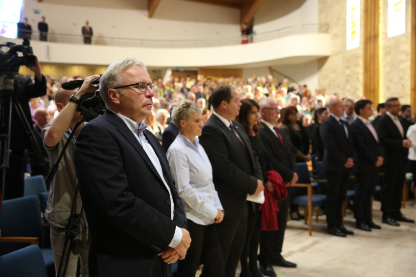 A szentmisén koncelebrált Cserháti Ferenc esztergom-budapesti segédpüspök és az Esztergom-Budapesti Főegyházmegye számos papja; a szertartáson jelen volt Simicskó István honvédelmi miniszter, Budapest XI. kerületének országgyűlési képviselője, Hegyi László egyházi kapcsolatokért felelős helyettes államtitkár, Latorcai Csaba kiemelt társadalmi ügyekért felelős helyettes államtitkár, Bagdy Gábor főpolgármester-helyettes, Hoffmann Tamás, a XI. kerület és Pokorni Zoltán, a XII. kerület polgármestere.