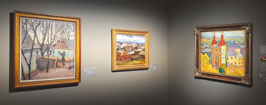 A továbbiakban Galimberti Sándor és Dénes Valéria szépséges, nyugalmat árasztó, többségében Nagybányán készült tájképeit csodálhatjuk meg. Az István toronyból remek kilátás nyílik a városra és a templomra. Többen is készítettek képet innen az itt alkotó művészek közül, mint például Lanov Mária Lelátás az István toronyból címmel. A legismertebb kép talán Ziffer Sándoré, akinek a piros cserepes barokk plébániatemplom tetszett meg.