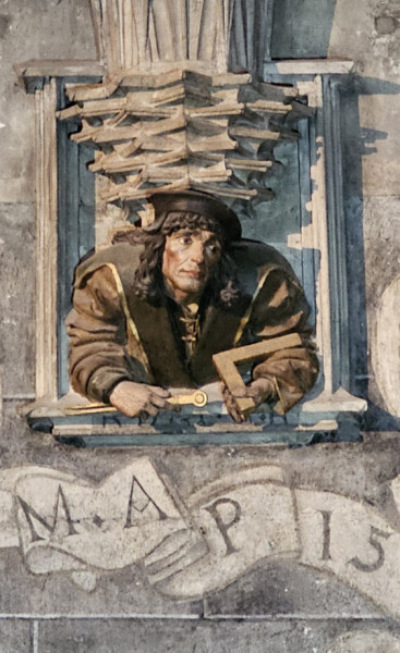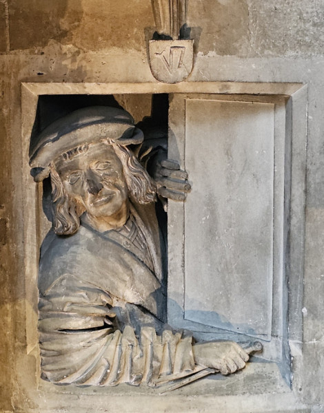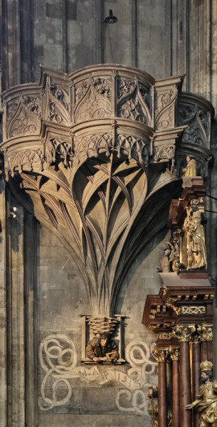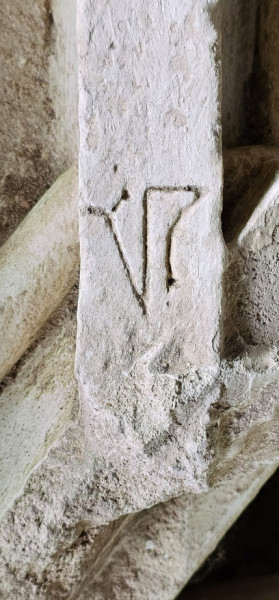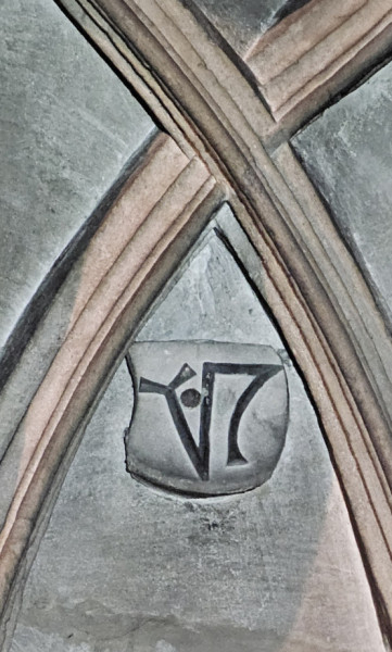 A szentély kőelemei közül három darabon is feltűnik egy nagyon jellegzetes kőfaragójel, amit jól ismer a művészettörténeti kutatás. Ez pedig nem másé, mint a brünni (ma Brno, Csehország) származású morva építésznek, a Stephanskirche páholymesterének, Anton Pilgramnak a jele.