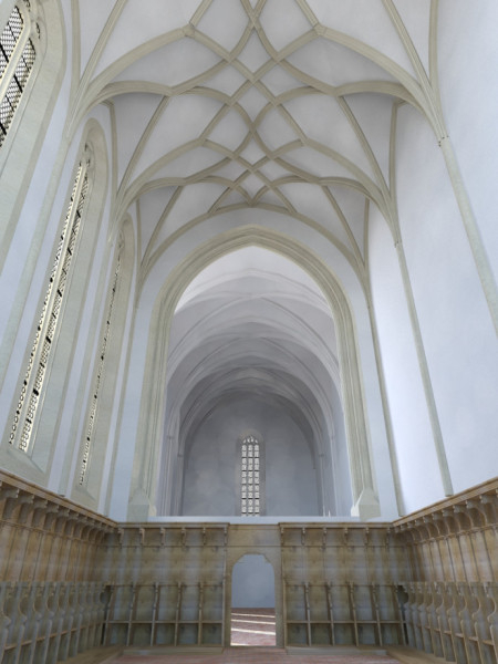 Az előkerült több mint száz kőelem alapján hitelesen rekonstruálni tudták a hálóboltozat formáját és elkészítették a rajzi rekonstrukciót. E munka során kiderült, hogy a visegrádi szentélyboltozat alaprajzának másolatai több példányban is fennmaradtak a bécsi Szent István-templom, azaz Stephanskirche középkori építőműhelyének máig megőrzött középkori tervrajzgyűjteményében.