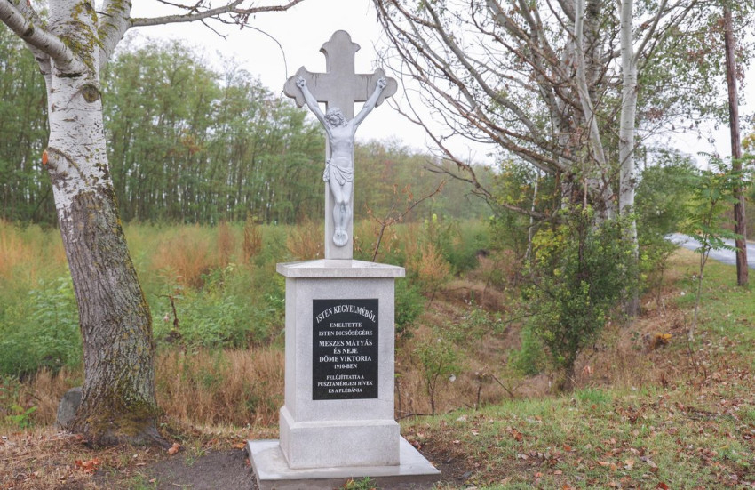 A kereszt a Meszes családról kapta a nevét, ugyanis vele szemben található a Meszes-tanya; a családfő, Meszes Mátyás állította a keresztet 1910-ben, hogy pontosan miért, azt nem tudni – ismertette Negyela Zoltán, Pusztamérges plébánosa.