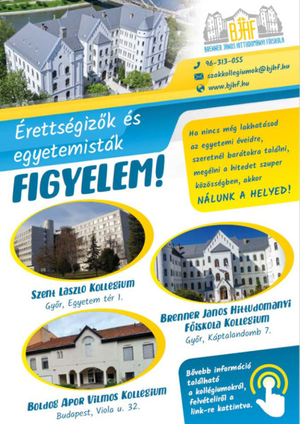 A jelentkezésről bővebben ITT tájékozódhatnak, illetve további részletekkel kapcsolatban a kollégiumok saját oldalán megadott elérhetőségek valamelyikén érdeklődhetnek.