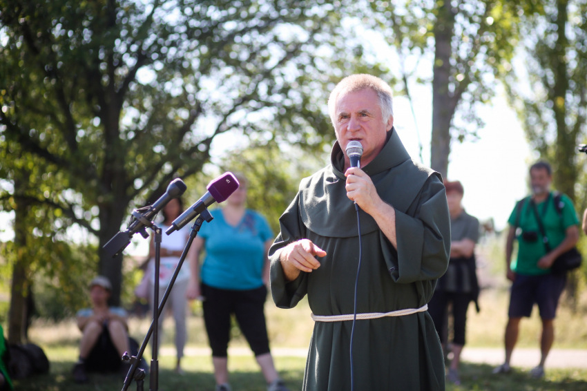A szép, komótos út végén beérünk Visegrádra, s bár nem a Salamon-toronyhoz megyünk, mint Szent László, hanem a Keresztelő Szent János nevét viselő templomhoz, a mi kiengesztelődésünk is teljesült; legalábbis senki sem dönt amellett, hogy visszatérjen a kezdőponthoz, és újra végigmenjen az úton a tökéletesebb béke érdekében, amikor erre Böjte Csaba rákérdez. Csaba testvér nem fogy ki a szóból, de a gondolatból sem: a szentmise előtt arról beszél, hogy fenntartható vágyaink legyenek, mert nem lehet nyolcmilliárd embernek dübörgő terepjárója, azzal tönkretennénk a Földet, de az elérhető, hogy nyolcmilliárd ember gyönyörködjön a szépségben, a kiskertjét művelje, vagy bármilyen más módon dicsérje Isten alkotását. Ne a sátántól való örömökre vágyjunk, hanem az Istentől valókra! Az Úrral való örvendezés örömére, a közösségépítés örömére, a megismerés, a bölcsesség örömére, a szépség örömére, az alkotás örömére.