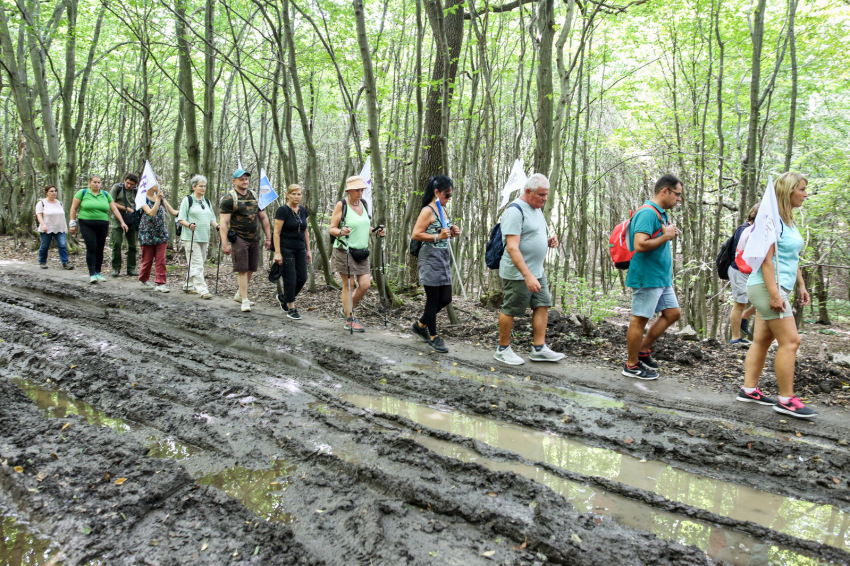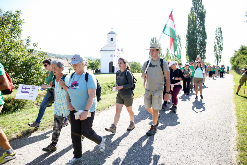 A zarándokok Ferenc pápa Laudato si’ kezdetű, nemcsak a természetről, hanem az emberi társadalomról is szóló zöld enciklikájának az első bekezdéseit hallgathatják meg útravaló gyanánt, majd Pilisszentlászló felé vesszük utunkat, a Mária Út önkéntesei által vezetett negyven-ötven fős keresztaljákban.