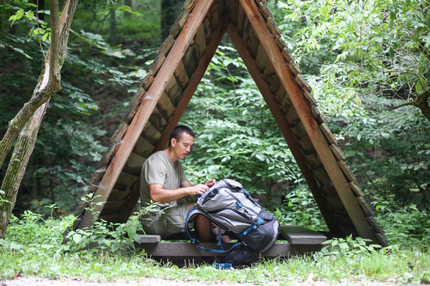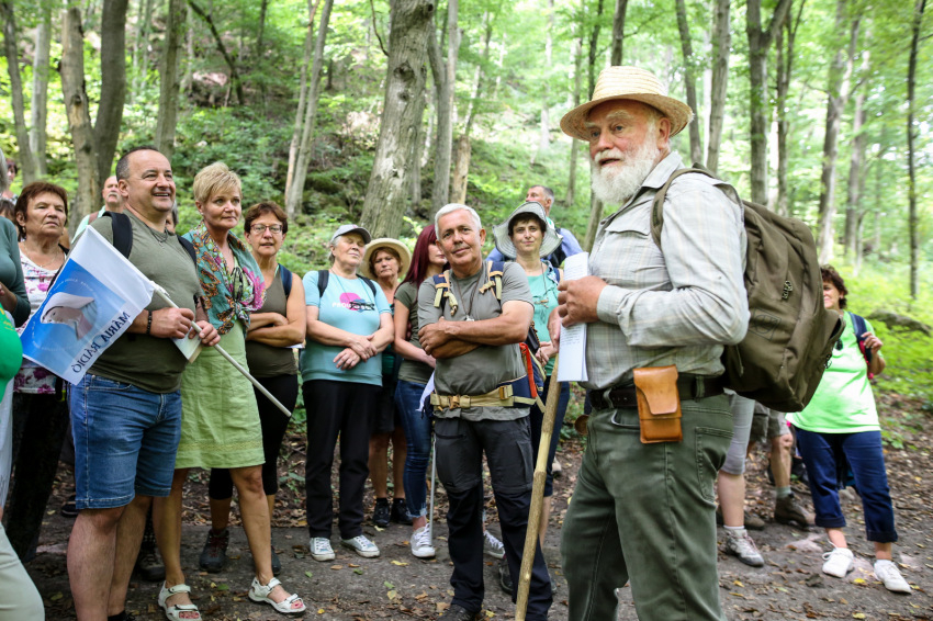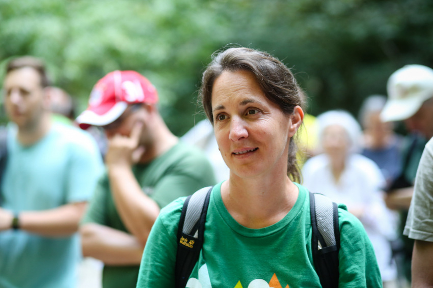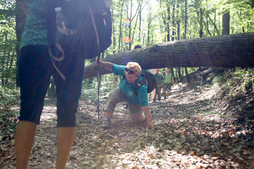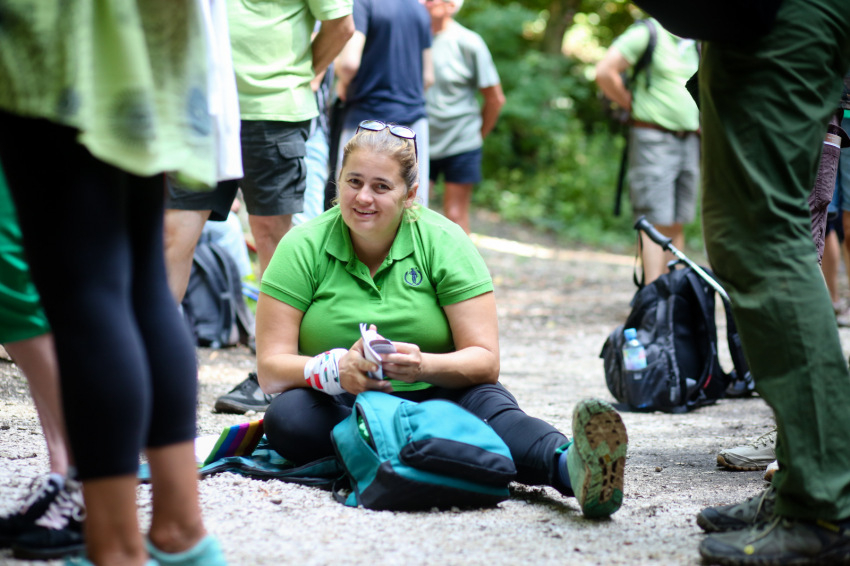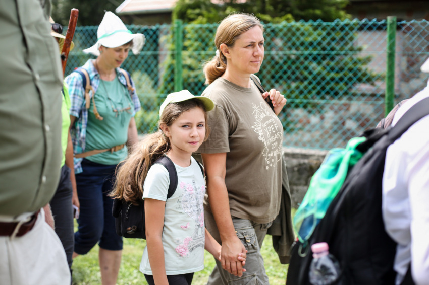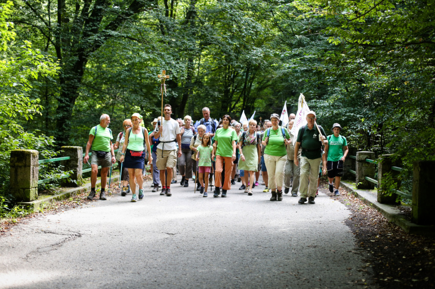 Fokozatosan vetjük bele magunkat a természetbe, először csak a ritmust vesszük fel az autóút mentén, aztán beszippant minket az erdő. Ahogy a cseppet sem monoton hatású, a zöld megannyi változatában díszlő ruháinkban haladunk, mintha mi magunk is a természet kis mozgó darabjai lennénk. A menet elején az énekes légkör a meghatározó, leghátulra már nem hat el a hangszóró: ott a kirándulás, a természetjárás jelleg domborodik ki. Az út során kétszer állunk meg hosszabb időre: Pilisszentlászlón egy egyórás ebédszünetre, majd az Apáti-kúti-patak gyönyörű, festői völgyén túljutva a Kaán-forrásnál, hogy vizet vegyünk. De a testi táplálék mellett egyik helyen sem marad el a lelki eledel sem: egy–egy tized rózsafüzér, egy-két gondolat az enciklikából és Böjte Csaba gondolatai, aki ferences szerzetesként arra is törekszik, hogy a természetnek is a kisebb testvére legyen. Emellett egy nyugdíjas erdésznek köszönhetően, aki már több mint húsz éve lakik Szentlászlón, minden egyes állomásnál új és új titkokat tudhatunk meg a környékről.