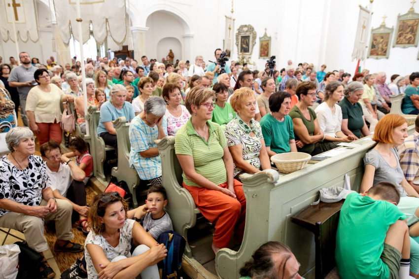 Mária mennybevételének két nappal korábbi ünnepét idézik meg a népénekek, majd az ötletgazda, a sötétzöld habitust viselő Böjte Csaba is arról beszél köszöntőjében, hogy 1083-ban Nagyboldogasszony ünnepére hívott össze gyűlést Szent László király Székesfehérvárra. Azért is éppen e napra, mert mintegy fél évszázaddal korábban – utód híján – Szent István is augusztus 15-én ajánlotta fel koronáját a Szűzanyának. De ha ez a felajánlás Nagyboldogasszonykor történt, akkor miért is augusztus 20-a a nemzeti ünnepünk? Szent László – érezve a magyarok közötti feszültséget – ötnapos bűnbánati időt rendelt el, hogy békét kössenek a haragosok. A király maga is útra kelt a visegrádi várhoz, hogy a toronyban fogva tartott Salamont kiengedje, és kiengesztelődjön vele. Ezt követően negyvenévnyi béke szállt a Kárpát-medencére, augusztus 20-án pedig megnyitották István király sírját, és oltárra emelték.