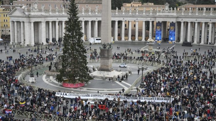 Üdvözöllek mindnyájatokat, rómaiak, Olaszországból és a világ különböző tájairól érkezett zarándokok! Külön is köszöntöm azoknak az olasz állampolgároknak a küldöttségét, akik hivatalosan erősen szennyezettnek nyilvánított területeken élnek, és akik régóta várják földjük megtisztítását. Szeretném kifejezni szolidaritásomat velük, és kívánom, hogy hangjuk meghallgatásra találjon. Mindnyájatoknak boldog vasárnapot és imádságos, a szeretet melegében és mértékletességben töltött szentestét kívánok.