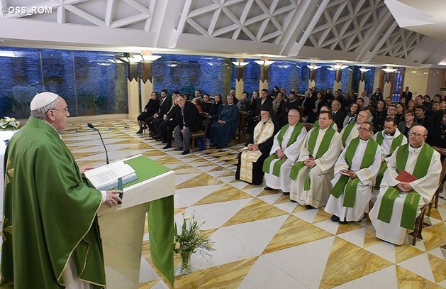 Ferenc pápa ezután a napi evangéliumról beszélt, melyben az apostolok egymással veszekednek, mert elfelejtettek kenyeret hozni magukkal. Az Úr arra inti őket, hogy óvakodjanak a farizeusok és Heródes kovászától. Ezt a két példát használja: Heródest, aki gonosz és gyilkos, és a farizeusokat, akik képmutatók! Ezt követően arra emlékezteti őket Jézus, amikor megtörte az öt kenyeret, valamint arra buzdítja őket, hogy gondoljanak az üdvösségre és mindarra, amit az Úr tett értünk. De ők nem értették, mert a szívük megkeményedett, hevesen, gonoszul vitatkoztak egymás között, azt keresték, ki a vétkes azért, hogy elfelejtkeztek a kenyérről.