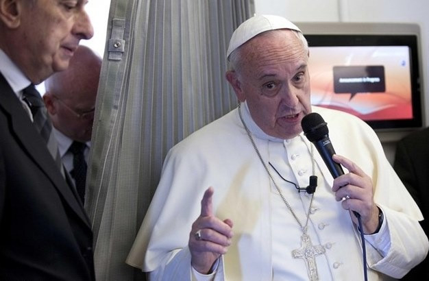 Egy francia újságíró tette fel a kérdést a Szentatyának, mit gondol a vallásszabadság és a szólásszabadság viszonyáról. Ferenc pápa válaszában kifejtette: mind a kettő alapvető emberi jog, és hangsúlyozta, hogy az Isten nevében elkövetett gyilkosságokat aberrációnak tartja. Ugyanakkor azt is leszögezte: a szólásszabadságnak vannak határai. Példaként Alberto Gasbarrit említette, a pápai utak szervezőjét, aki éppen mellette állt a repülőgépen. „Ha dr. Gasbarri, jó barátom, sértegetné az édesanyámat, számíthatna arra, hogy behúznak neki” – mondta Ferenc pápa, miközben kezével is illusztrálta az elhangzottakat. „Ez így van rendjén. Nem lehet provokálni. Nem lehet mások hitét sértegetni. Nem lehet gúnyt űzni mások hitéből.”