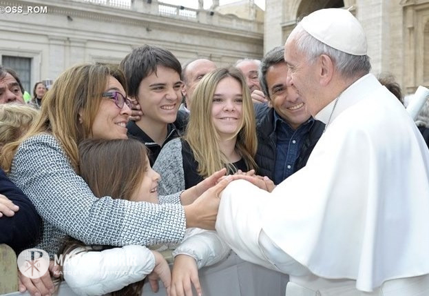 Hozzátehetjük, hogy – ha jól megnézzük – a család egész valósága az ígéreten alapszik (jól gondoljátok meg ezt: a család önazonossága az ígéreten alapszik!): mondhatjuk, hogy a család abból a szeretet- és hűségígéretből él, amelyet a férfi és a nő tesznek egymásnak. Ebbe beletartozik a gyermekek elfogadásának és felnevelésének vállalása; megvalósul az idős szülőkről való gondoskodásban, a család leggyengébb tagjainak védelmében és ellátásában, egymás kölcsönös segítésében, ami arra irányul, hogy saját képességeiket kibontakoztassák és saját korlátaikat elfogadják. És a házastársi ígéret kitágul: a házasok osztoznak az összes apa, anya, gyermek örömeiben és szenvedéseiben, nagylelkű nyitottsággal az emberi együttélésre és a közjóra. Ha egy család önmagába zárkózik, az önellentmondás, annak az ígéretnek a megsértése, amelytől élete származik, és amely folytonosan élteti. Ezt sose felejtsétek el: a család önazonossága mindig egy olyan ígéret, amely kitágul: az összes család felé és az egész emberiség felé.