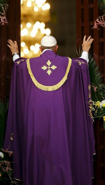Adventnek ezen az első vasárnapján, amikor kezdetét veszi az Üdvözítőre való várakozás, a keresztény remény jelképének liturgikus időszaka, Isten lépteimet hozzátok vezette, erre a földre, miközben az egyetemes egyház arra készül, hogy megnyissa az irgalmasság jubileumi szentévét, amelyet mi ma itt kezdtünk meg. Különösen örülök neki, hogy lelkipásztori látogatásom egybeesik a szentév megnyitásával a ti országotokban.