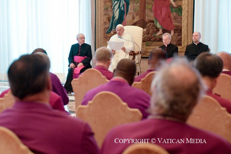 A Katolikus Egyház napjainkban szinodális utat jár be. A Szentatya örömére szolgált, hogy igen sok testvéri küldött, köztük az anglikán közösség püspöke is részt vett a szinódusi közgyűlés tavalyi első ülésén. A pápa hangsúlyozta: továbbra is várja az ökumenikus részvételt az őszi ülésszakon, és imádkozik, hogy a római püspök szerepének jobb megértése legyen a szinódus gyümölcsei között. Az első ülésszak végén készült összefoglaló jelentés a szinodalitás és a primátus közötti kapcsolat alaposabb vizsgálatát kérte a különböző szinteken: a helyi, regionális és egyetemes szinten. Ebben az értelemben hasznos forrás lehet az Anglikán–Római Katolikus Nemzetközi Bizottság legújabb munkája is – mutatott rá ferenc pápa.
