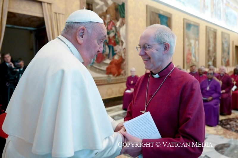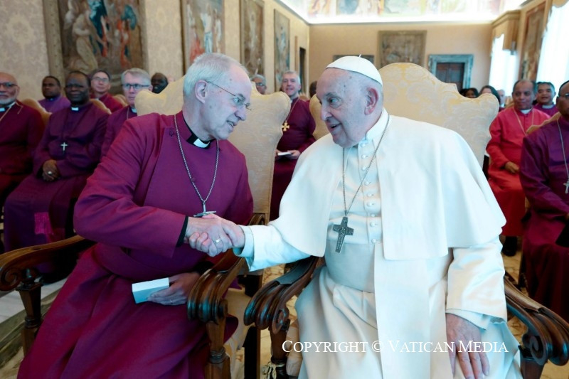 Ferenc pápa hálásan megköszönte Justin Welby anglikán érsek üdvözlő szavait, és arra emlékeztette, hogy ugyanabban az időben kezdte meg canterburyi érseki szolgálatát, mint ő maga Róma püspökeként a munkáját. Azóta sokszor találkoztak, imádkoztak együtt és tettek bizonyságot az Úrba vetett közös hitükről. Idén januárban a Szent Pál apostol megtérése napján tartott vesperás ünnepség során is együtt adtak megbízást néhány katolikus és anglikán püspöknek, hogy közösen végezzék szolgálatukat, mintegy elővételezze minden keresztény egységét Krisztus egyetlen Egyházában. A pápa hálás ezért a testvéri együttműködésért, és azt sem felejti, amit az anglikán prímás Dél-Szudánban tett az ottaniak szolgálatában.