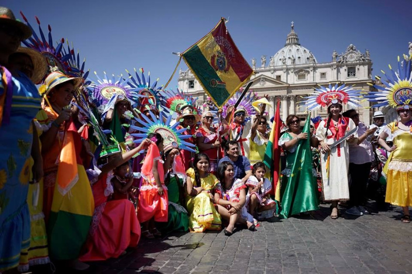 Sok bolíviai zászlót látok! Szívből köszöntöm az Olaszországban élő bolíviaiak csoportját, elhozták magukkal az országukat leginkább jelképező Szűz Mária-ábrázolásokat: az Urcupiñai Szüzet, a Copacabanai Szüzet és sok más ábrázolást. Jövő héten épp a ti hazátokban leszek. Anyánk, Szűz Mária, védelmezzen titeket a mennyből. Köszöntöm a bérmálkozásra készülő ibizai fiatalokat is. Kérlek benneteket, imádkozzatok értem.