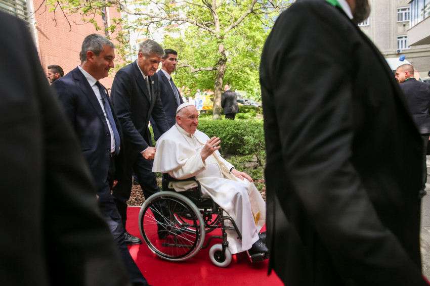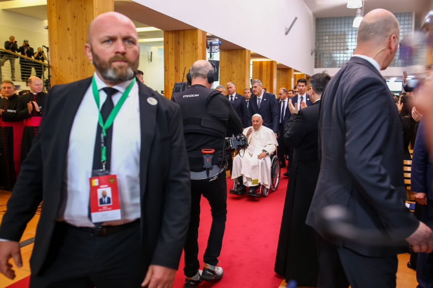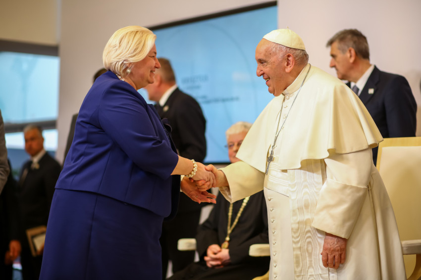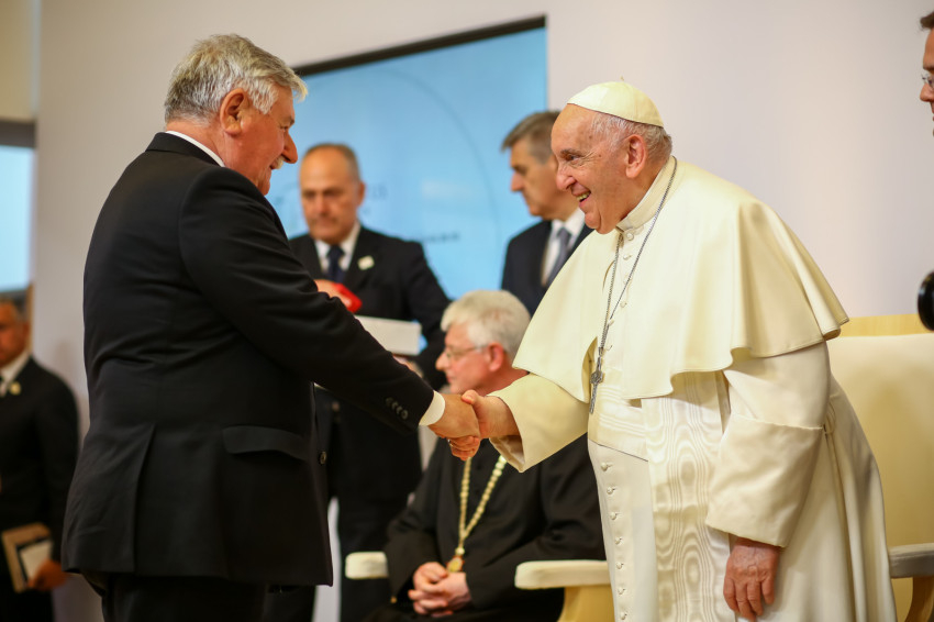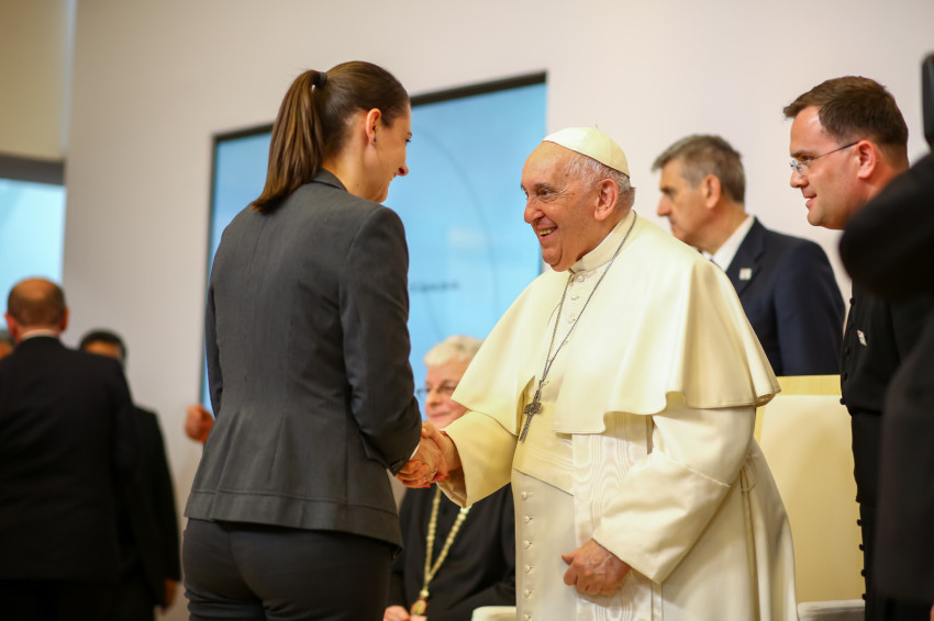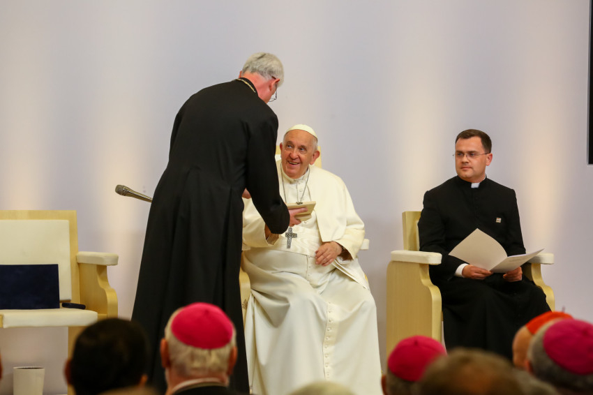 A találkozó végén a Szentatya kézfogással és személyes szavakkal köszönte meg az apostoli út megvalósulásában részt vevő főbb MKPK-munkatársaknak a segítséget és együttműködésüket a szervezőkkel.