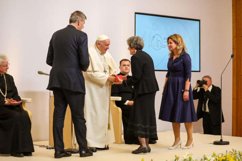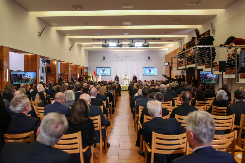 a kommunizmus „szabadsága” olyan „szabadság” volt, amelyet rákényszerítettek az emberekre, amelyet kívülről korlátoztak, amelyben mások döntöttek; a konzumizmus „szabadsága” pedig egy szabadelvű, hedonista, önelégedett „szabadság”, amely a fogyasztás és a tárgyak rabszolgáivá tesz bennünket. Milyen könnyű eljutni a gondolkodásra mért korlátoktól, ami a kommunizmusé, a saját magunk korlátok nélküli elgondolásához, ami a konzumizmusé! A korlátolt szabadságból egy korlátok nélküli szabadságba. Jézus viszont kiutat kínál, amikor azt mondja, hogy az az igaz, ami az embert felszabadítja, ami az embert a függőségeiből és bezárkózásaiból kiszabadítja. Ennek az igazságnak a kulcsa a szeretettől soha el nem szakadó, kapcsolatban maradó, alázatos és nyitott, konkrét és közösségi, bátor és alkotó megismerés. Ez az, aminek a művelésére az egyetemek hivatottak, és amit a hitnek táplálnia kell. Ezért kívánom, hogy ez és minden más egyetem az egyetemesség és a szabadság központja, a humanizmus termékeny műhelye és a remény laboratóriuma legyen. Szívemből adom áldásomat, és köszönetet mondok azért, amit tesztek. Köszönöm!
