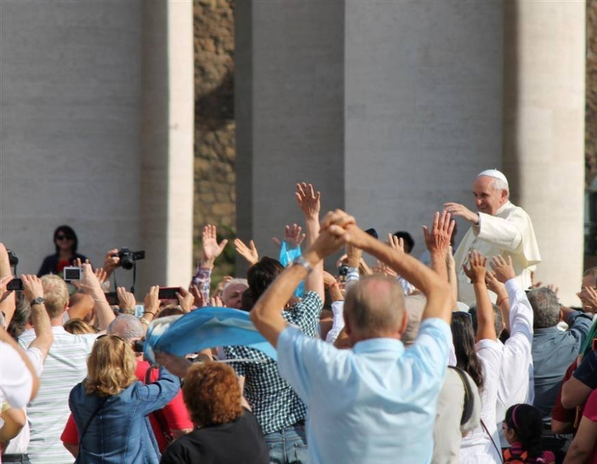 A szerdai általános kihallgatás végén Ferenc pápa köszöntötte a Szentföldről és a Közel-Keletről érkezett zarándokokat. „Az egyház katolikus és apostoli, mert kitárja karjait minden ember felé. Határozottan és önzetlenül, kényszerítés nélkül hirdeti a jóhírt. Az emberré lett Isten fia hitére hív mindenkit szeretettel, gyengédséggel és türelemmel. Ti, azoknak a szent földeknek a gyermekei, ahonnan az evangélium hirdetésének világossága kiterjedt a Föld határáig, legyetek mindig az üdvösség, az igazság és az áldás üzenetének bátor és örömteli hordozói a nehézségek ellenére is. Az Úr áldjon meg és védelmezzen benneteket!”