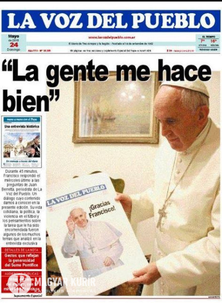 A vatikáni Szent Márta-ház egyik kicsiny, egyszerű termében Ferenc pápa fogadta a La Voz del Pueblo újságíróját. A találkozón nem volt más jelen, és a pápa csak egyetlen feltételt szabott: „Az egyedüli, amit kérek tőled, hogy tisztán játssz velem”, mondta, mielőtt elindítottam a hangfelvevőt. Azután, a negyvenöt percig tartó interjú során megvallotta, hogy korábban „pánikolt az újságíróktól”. Nyilvánvalóvá vált, hogy már túl van ezen a nehézségen.