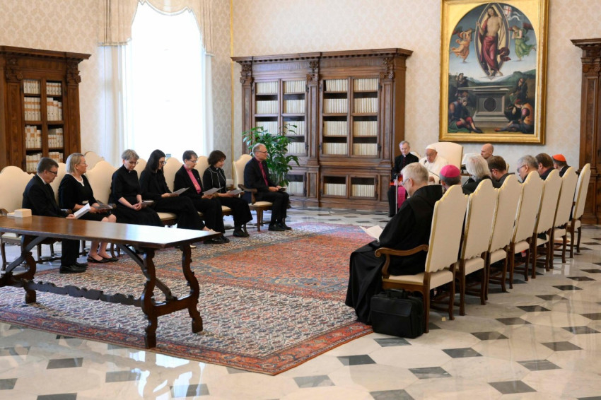 A pápa szeretettel köszöntötte a Lutheránus Világszövetség küldötteit, megköszönve Henrik Stubkjær püspöknek, a világszövetség új elnökének köszöntő szavait és az ajándékát, továbbá üdvözölte Anne Burghardt tiszteletes asszonyt, aki immár több éve dolgozik a világszövetség főtitkáraként.