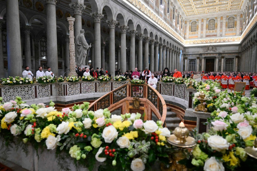 Hálás vagyok az Ökumenikus Patriarchátust képviselő Polikárp metropolitának, az anglikán közösséget képviselő Ian Ernest érseknek, aki befejezi értékes szolgálatát, amelyért nagyon hálás vagyok – minden jót kívánok neki, amikor visszatér hazájába –, valamint a többi egyház képviselőinek, akik részt vesznek ezen az esti dicsőítő áldozaton. Fontos, hogy együtt imádkozzunk, és jelenlétetek ma este örömforrás mindannyiunk számára. Üdvözlöm továbbá a Keresztények Egységéért Felelős Dikasztérium Ortodox és Keleti Ortodox Egyházakkal való Kulturális Együttműködésért felelős Bizottsága által támogatott diákokat, az Egyházak Világtanácsa Bossey Ökumenikus Intézete tanulmányútjának résztvevőit, valamint a sok más ökumenikus csoportot és zarándokot, akik erre a szertatásra érkeztek Rómába. Köszönetet mondok a kórusnak, amely igen gyönyörű környezetet biztosít számunkra az imádsághoz. Kívánom, hogy Szent Pálhoz hasonlóan mindannyian megtaláljuk reménységünket Isten megtestesült Fiában, és felajánljuk azt másoknak mindenütt, ahol elfogyott a remény, ahol életeket oltottak ki, vagy ahol viszontagságok törték össze a szíveket (vö. Homília a karácsonyi éjjeli misén, 2024. december 24-én).