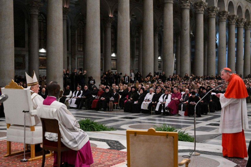 A vesperás végén az apostoli áldás előtt Kurt Koch, a Keresztény Egység Előmozdításáért felelős Dikasztérium prefektusa köszöntötte a Szentatyát.
