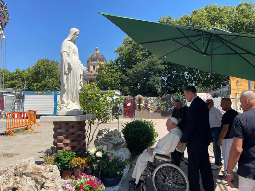 Mutatványosok, akrobaták, bohócok adtak műsort Ferenc pápa tiszteletére, aki az egyik fellépőtől, a kis Oscartól ajándékot is kapott: egy zenedobozt és egy levelet, valamint egy kék borítékot benne 5 euróval: „hogy vehess magadnak fagyit”.