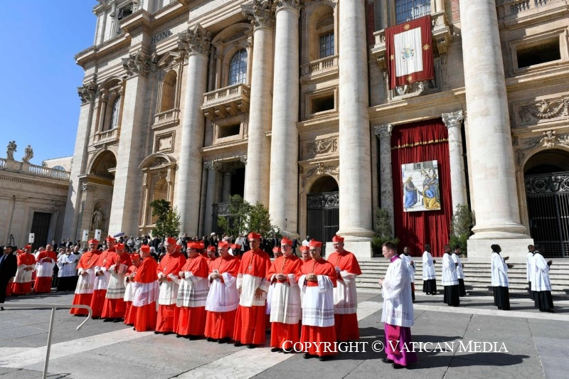 A szertartás elején az új bíborosok nevében Robert Francis Prevost, a Püspöki Dikasztérium prefektusa mondott köszönetet a pápának.
