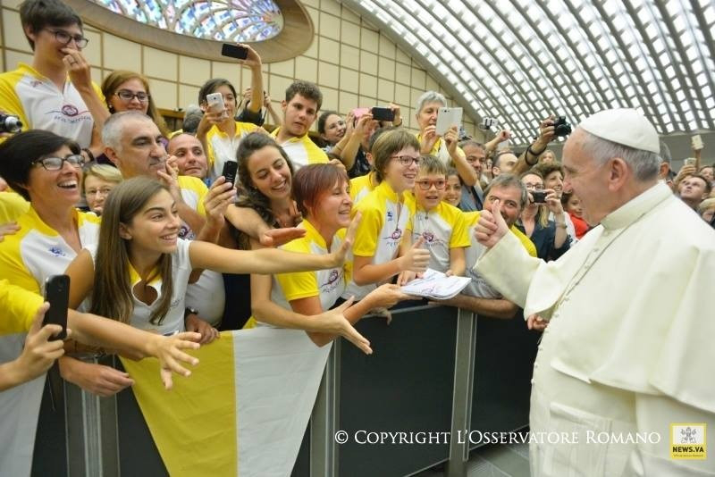 Előfordulhat, hogy nehéz vagy fájdalmas körülmények között ér minket egy ünnep, és legfeljebb „gombóccal a torkunkban” tudunk ünnepelni. Mégis, ezekben az esetekben is, kérjük Istentől az erőt, hogy ne üresítsük ki teljesen az ünnepet. Ti, anyukák és apukák, jól tudjátok ezt: a gyermekeitek iránti szeretetből hányszor képesek vagytok megfeledkezni gondjaitokról, hogy ők örömmel ünnepelhessenek, és ízlelhessék az élet jó ízét! Mennyi szeretet van ebben!