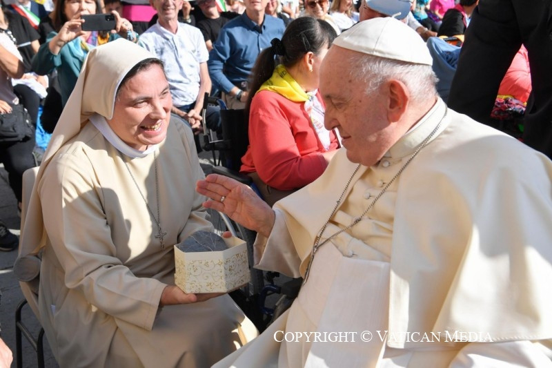 Kedves testvéreim és nővéreim, a megbocsátás nem elvesz, hanem ad! Mit ad a megbocsátás? Méltóságot! A megbocsátás nem elvesz, hanem méltóságot ad az embernek, arra késztet, hogy tekintetünket magunkról a másik felé fordítsuk, hogy – persze – gyarlónak lássuk, mint amilyenek mi vagyunk, de mindig testvérnek és nővérnek az Úrban. Testvéreim és nővéreim, a megbocsátás annak a buzgóságnak a forrása, amely irgalmassággá válik, s alázatos és örömteli életszentségre hív, mint amilyen Szent Bakhita életszentsége volt.