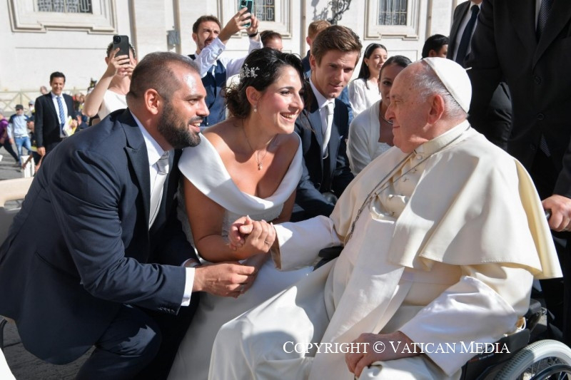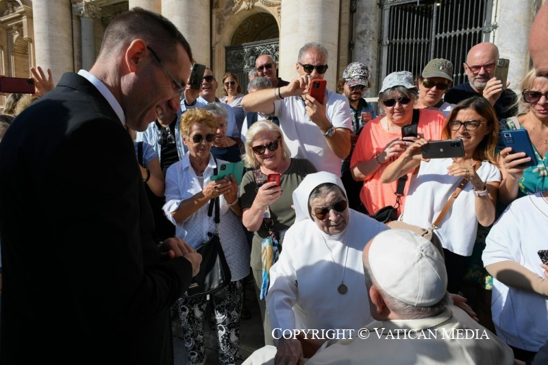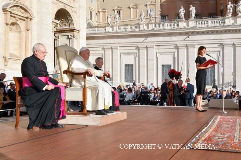 Az apostoli buzgóságról szóló katekéziseink útján ma Szent Bakhita Jozefinának, egy szudáni szentnek a tanúságtétele lesz inspiráló forrás számunkra. Sajnos Szudánt hónapok óta szörnyű fegyveres konfliktus sújtja, melyről keveset beszélnek manapság. Imádkozzunk a szudáni népért, hogy békében élhessen! De Szent Jozefina híre minden határt átlépett, és mindazokhoz eljutott, akiktől megtagadják az identitást és a méltóságot.