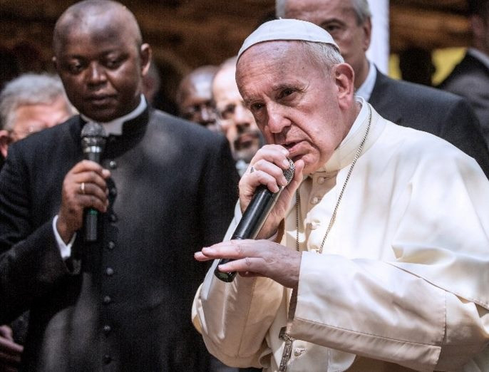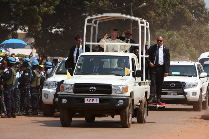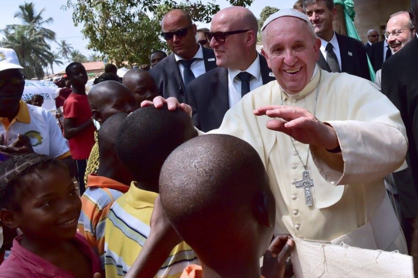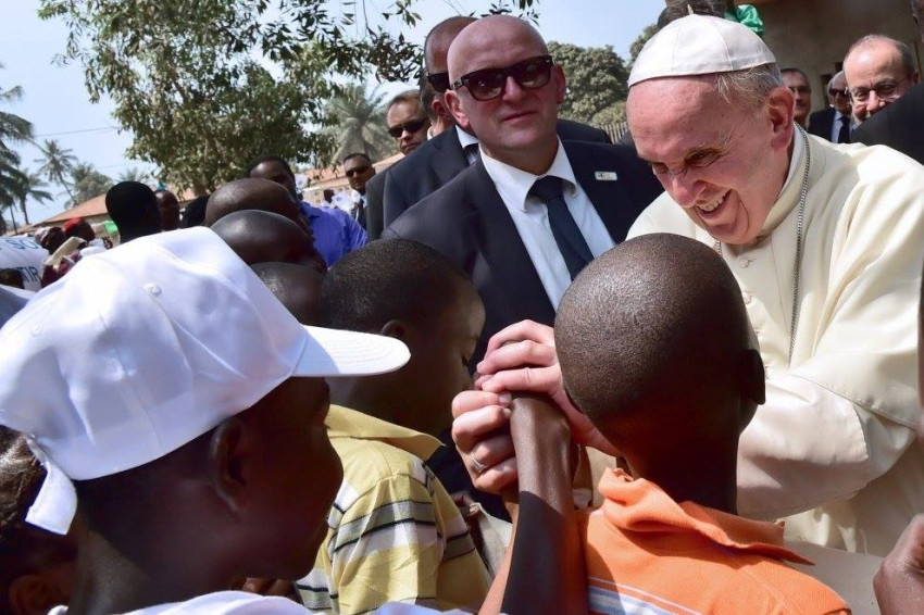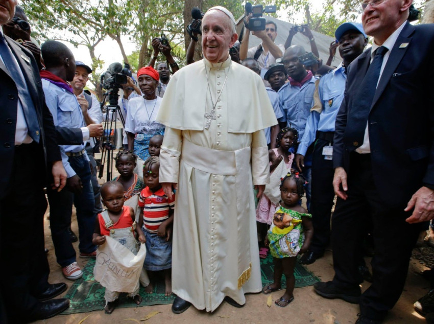 A békét kívánom nektek, és minden közép-afrikainak, nagy békét közöttetek. Hogy békében tudjatok élni, bármilyen néphez, kultúrához, valláshoz és társadalmi réteghez tartozzatok is. De mindenki békében! Mindenki! Hiszen mindnyájan testvérek vagyunk! Azt szeretném, ha mindnyájan együtt mondanánk: »Mindnyájan testvérek vagyunk!« [A tömeg elismétli: »Mindnyájan testvérek vagyunk!«] Még egyszer! [»Mindnyájan testvérek vagyunk!«] Mivel mindnyájan testvérek vagyunk, ezért akarunk békét!