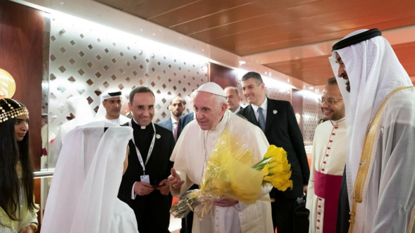 Ferenc pápát Abu-Dzabi repülőterén Ahmad et-Tajjeb, a kairói al-Azhar mecset és egyetem főimámja, a szunnita iszlám legmagasabb rangú vallási elöljárója is várta és köszöntette, aki a február 4-i vallásközi konferencia egyik fő résztvevője