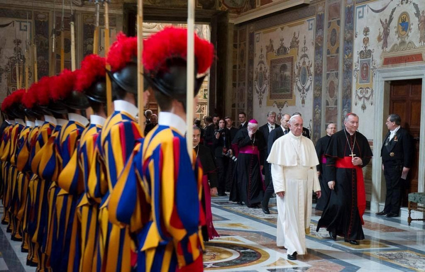 A Szentszék továbbra is azon fáradozik, hogy a béke hangját a föld végső határain is meghallják. A Vatikáni Államtitkárság készségesen együttműködik a szentszéki diplomatákkal az egész nemzetközi közösség javára, azzal a benső biztonsággal, hogy a szentévben az irgalmasság, Isten értékes ajándéka legyőzi a szívek hideg közömbösségét. Ferenc pápa ezekkel az érzésekkel kívánt minden szentszéki diplomatának és szeretteiknek áldásokkal teli új esztendőt.