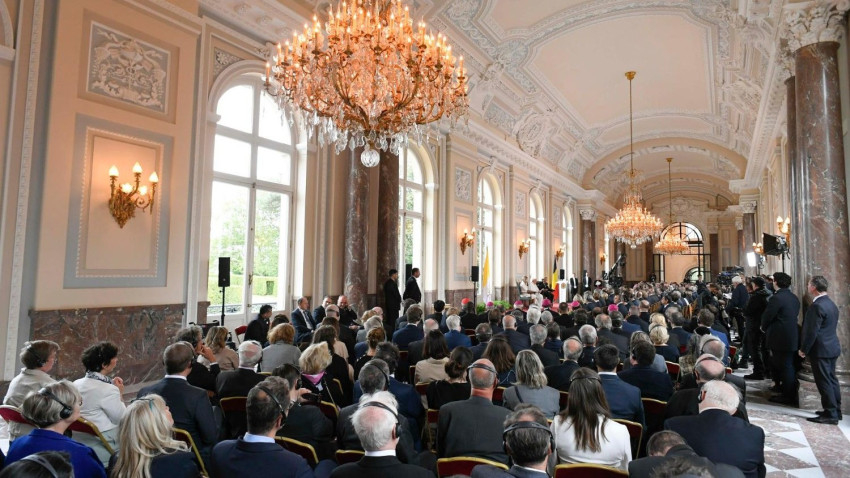 Belgium egyszerre apró és nagy ország, nyugati és központi, mely egy nagy szervezet lüktető szíve – ezzel a hasonlattal élt a pápa első hivatalos beszédében, amelyet Belgiumban mondott 46. külföldi apostoli útja során. Mintegy háromszáz ember előtt beszélt a belga királyi rezidencián, politikai és egyházi elöljáróknak, vállalkozóknak, a civil társadalom és a kulturális élet képviselőinek.