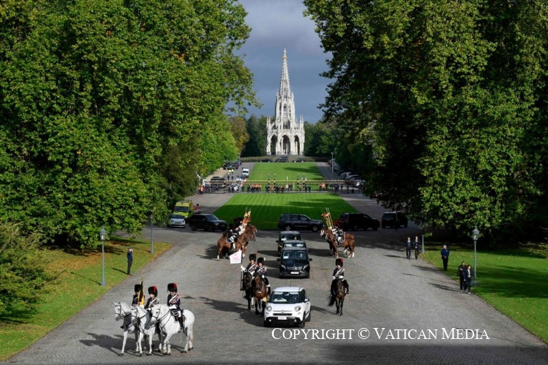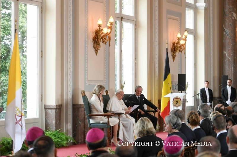 Sajátos történelme révén Belgium fontos szerepet játszik a kontinens egyensúlyában, a második világháborút követően az európai nemzetek ugyanis a béke, az együttműködés és az integráció útjára lépve ezt az országot választották a főbb európai intézmények székhelyéül, a földrész fizikai, erkölcsi és spirituális újjáépítésére. Úgy is fogalmazhatunk, hogy Belgium földrajzi és kulturális értelemben híd észak és dél, a germán és a latin világ között. A találkozás, a párbeszéd helye, ahol megtanuljuk, hogy saját identitásunkat ne bálványozzuk és ne tekintsük korlátnak, hanem egy befogadó térnek lássuk, amelyből kiindulva új szintézisekre törekszünk. Ez a híd elengedhetetlen ahhoz, hogy a békét építsük és elutasítsuk a háborút – hangsúlyozta a pápa.