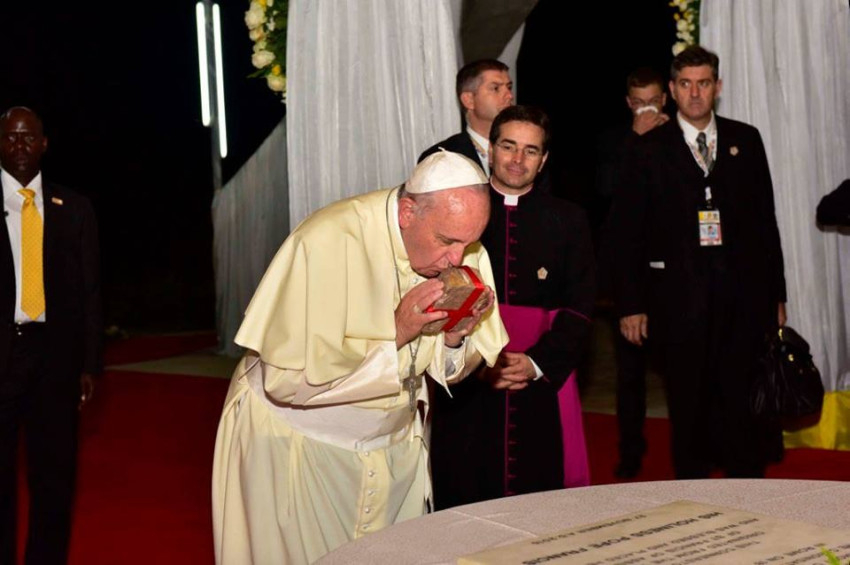 Ferenc pápa Munyonyóban megáldotta az új templom alapkövét, majd a kegyhely gondozását végző ferences rendház előtt találkozott a hitoktatókkal, tanítókkal és tanárokkal. Beszédében emlékeztetett arra, hogy Jézus nemcsak apostolokat és pásztorokat adott egyházának, hanem tanítókat is, hogy építsék az egyház testét hitben és szeretetben.