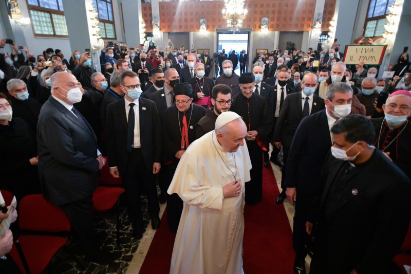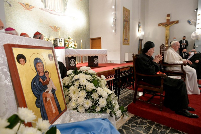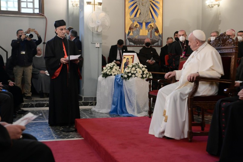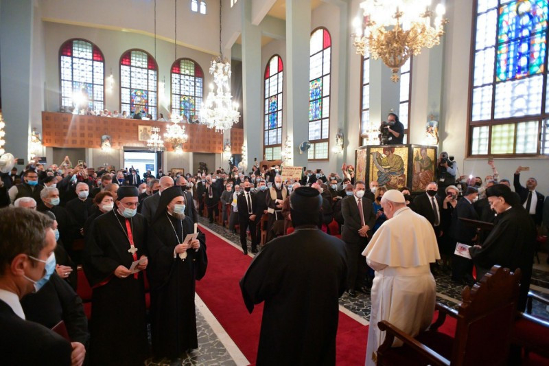 Rátok nézek, és látom sokszínűségetek gazdagságát. Valóban, mint egy szép gyümölcssaláta! Mindenki eltérő! Üdvözlöm a maronita egyházat, mely az évszázadok során többször is partra szállt a szigeten, és gyakran sok megpróbáltatáson át kitartott a hitben. Amikor Libanonra gondolok, nagy aggodalmat érzek a mostani válsága miatt, és érzékelem a megfáradt, erőszak és fájdalom által megpróbált nép szenvedését. Imáimban hordozom a béke iránti vágyat, mely az ország szívéből fakad. Köszönetet mondok azért, amit az egyházban Ciprusért tesztek. Libanon cédrusait sokszor említi a Szentírás a szépség és nagyság mintaképeiként. De még egy robusztus cédrus is a gyökerektől indul, és lassan hajt ki. Ti vagytok ezek a gyökerek, Ciprusra átültetve, hogy terjesszétek az evangélium illatát és szépségét. Köszönöm!