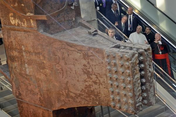 Ferenc pápa imája a Ground Zero emlékhelyen