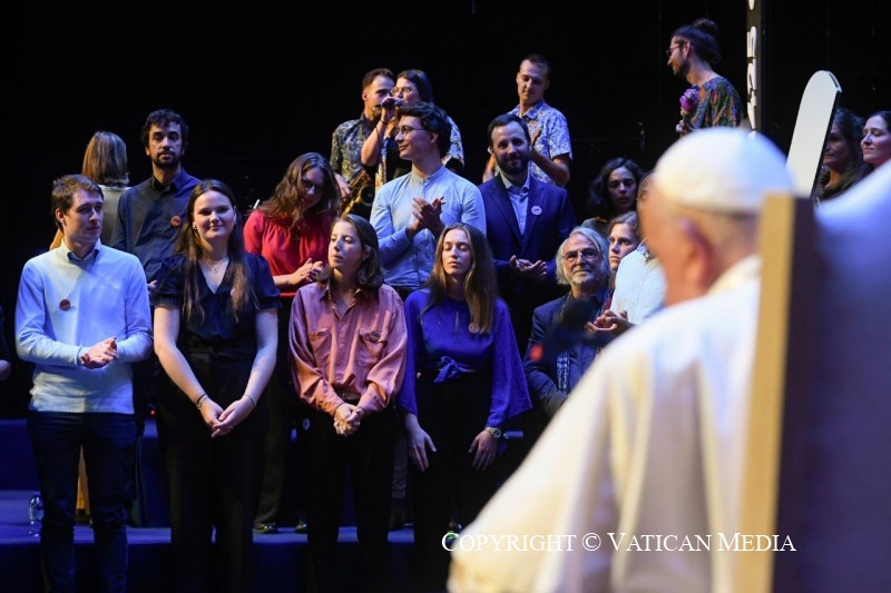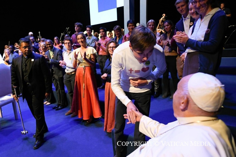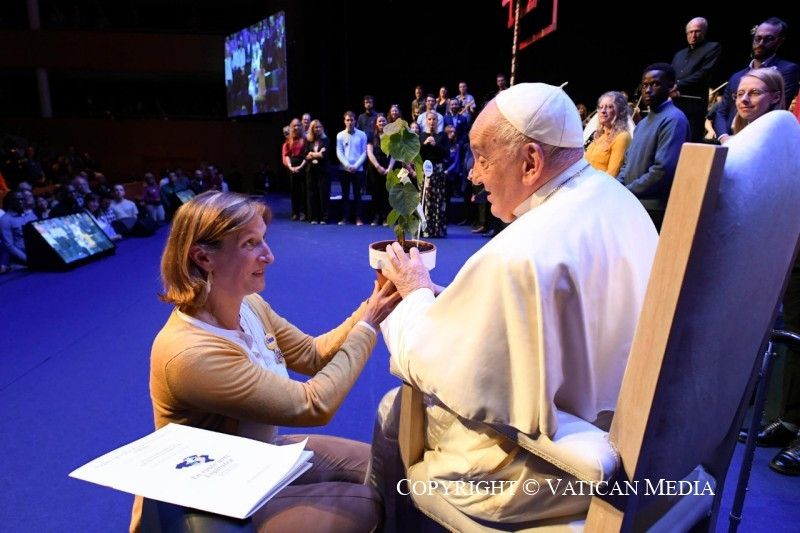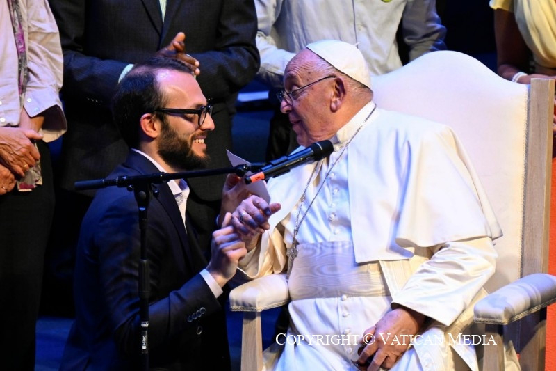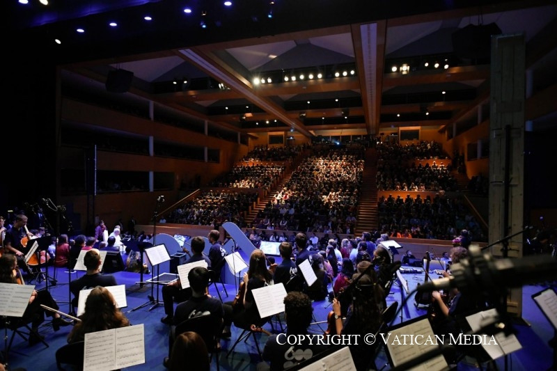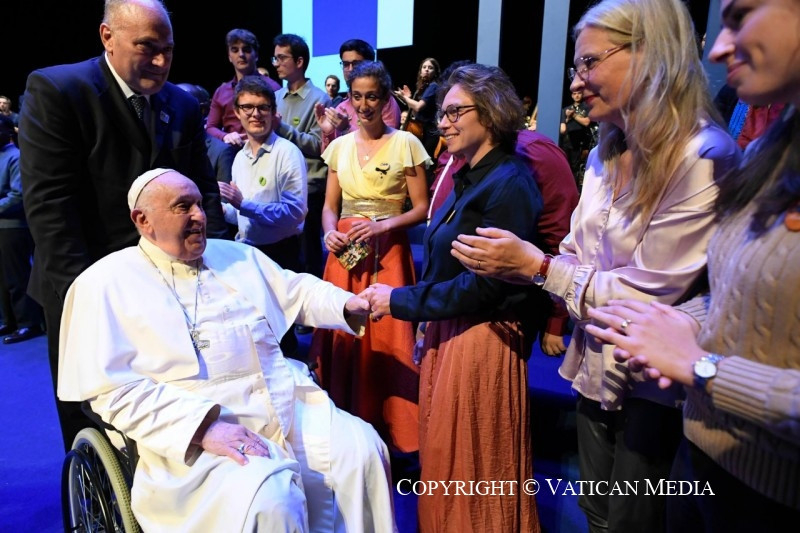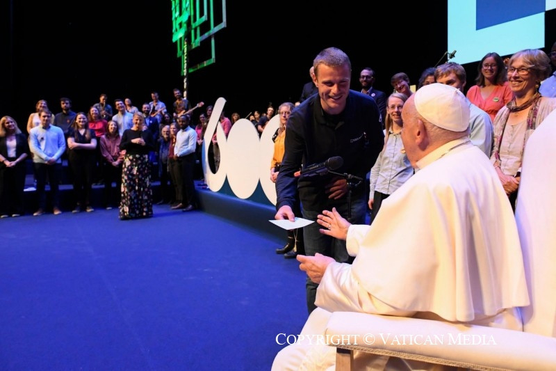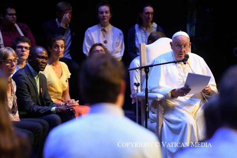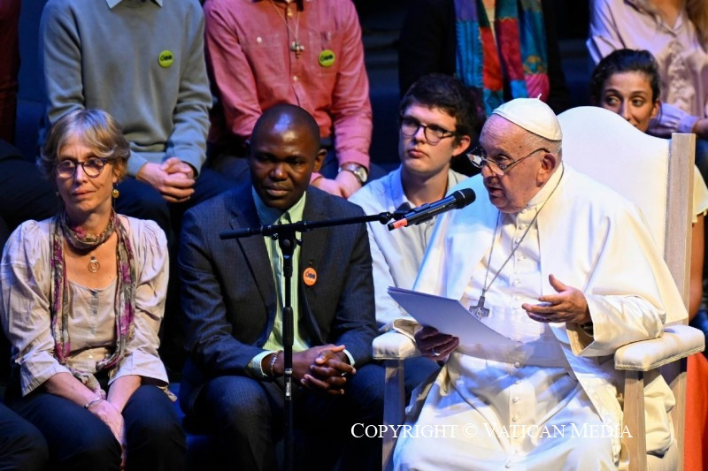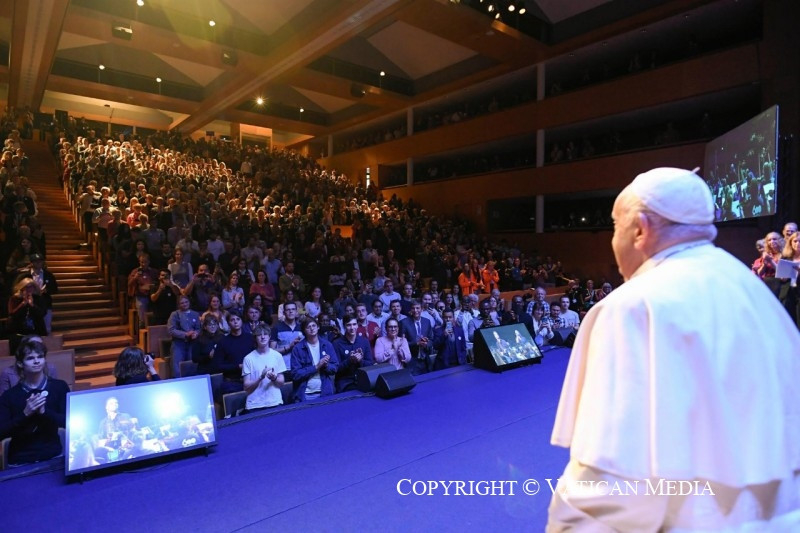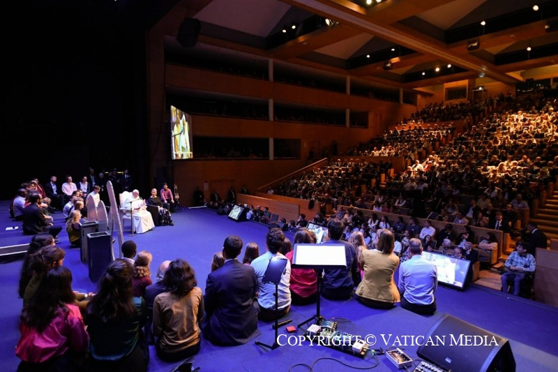 Felvetett kérdéseitek közül megragadott a jövőre és a szorongásra vonatkozó kérdés. Látjuk, mennyire erőszakos és szemtelen a gonosz, amely pusztítja a környezetet és a népeket. Szemlátomást, nem akar mérséklődni. A háború a legbrutálisabb megnyilvánulása – tudjátok-e, hogy az egyik országban, melyet nem nevezek meg, a legtöbb bevételt hozó beruházás ma a fegyvergyártás, ez becstelenség! –, és szemlátomást nem akar csillapodni: a háború brutális megnyilvánulás; ugyanígy a korrupció és a rabszolgaság modern formái is.