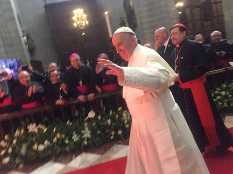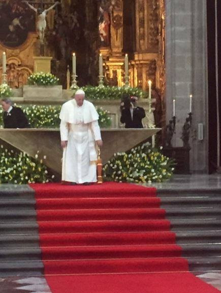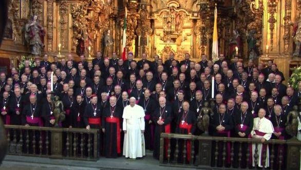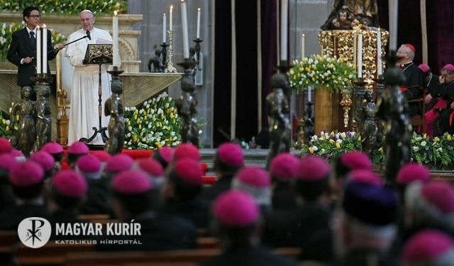 A Szentatya a mexikóvárosi Nagyboldogasszony metropolita székesegyházban találkozott a mintegy 120 mexikói püspökkel. A pápa gondolatmenetének az alapja az a gyengéd pillantás volt, ahogy a Guadalupei Szűz, a „Morenita” rátekint az emberekre és ezt a pillantást, a mögötte rejlő gazdag tartalommal, kell megtanulnia a mexikói főpásztoroknak. A morenita spanyol szó, feketécskét jelent, a Szűzanya mesztic arcszínére utal, mely az őslakosok és a betelepülő fehér spanyolok isteni ötvözete. A Szűzanya identitása tehát az Újvilágban a mesztic!