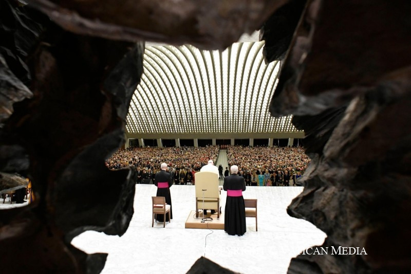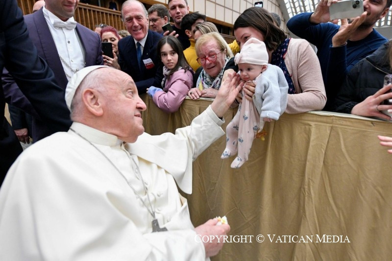 Örülök, hogy fogadhatlak benneteket, nagyszülők és unokák, fiatalok és kevésbé fiatalok. Ma megtapasztaljuk – ahogy a zsoltár mondja –, milyen jó együtt lenni (vö. Zsolt 133). Elég rátok nézni, hogy megértsük ezt, mert szeretet van köztetek. És azt szeretném, hogy éppen erről gondolkodjunk el egy kicsit: arról, hogy
