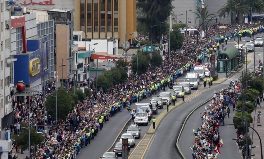 Ferenc pápa július 5-én megkezdte latin-amerikai apostoli látogatását, amelynek állomásai: Ecuador, Bolívia és Paraguay. Az Alitalia repülőgépe helyi idő szerint délután 14.45 perckor (magyar idő szerint 21.45-kor) érkezett meg Quito nemzetközi repülőterére, amely Mariscal Sucre 19. századi függetlenségi harcos nevét viseli.