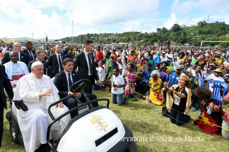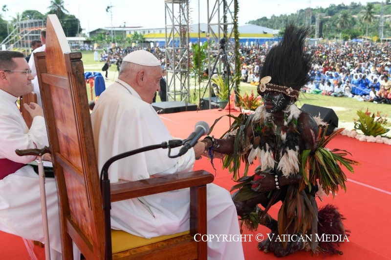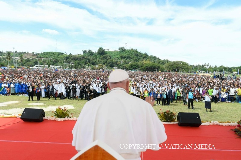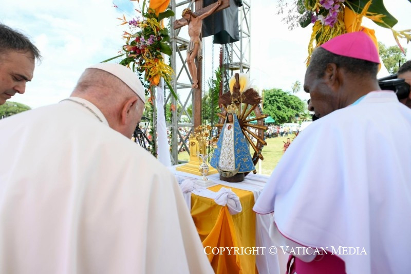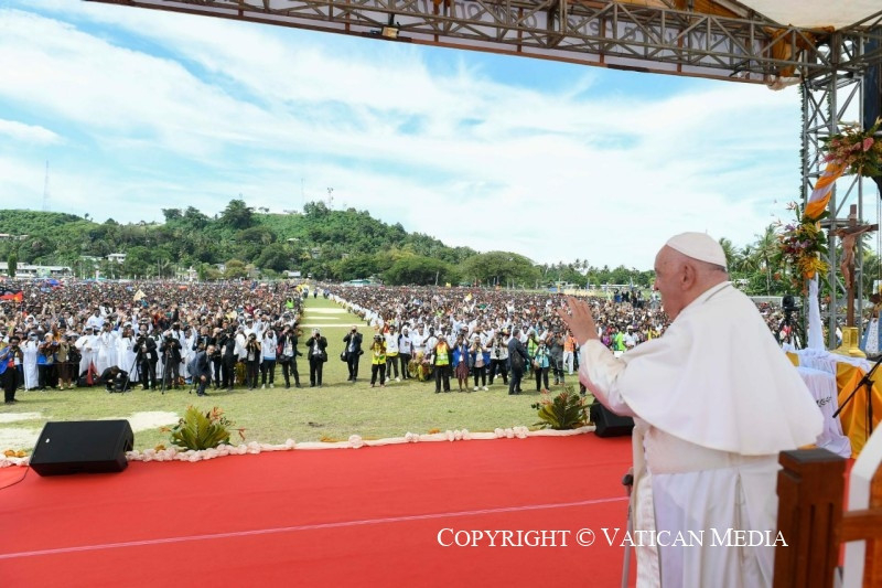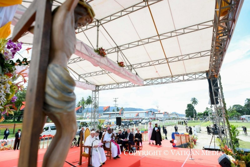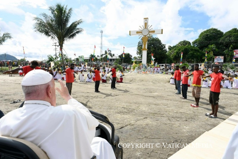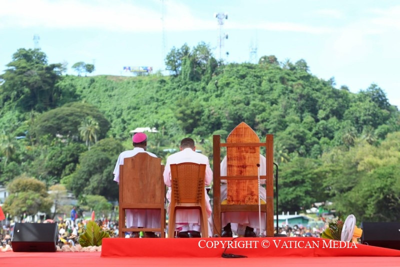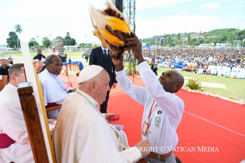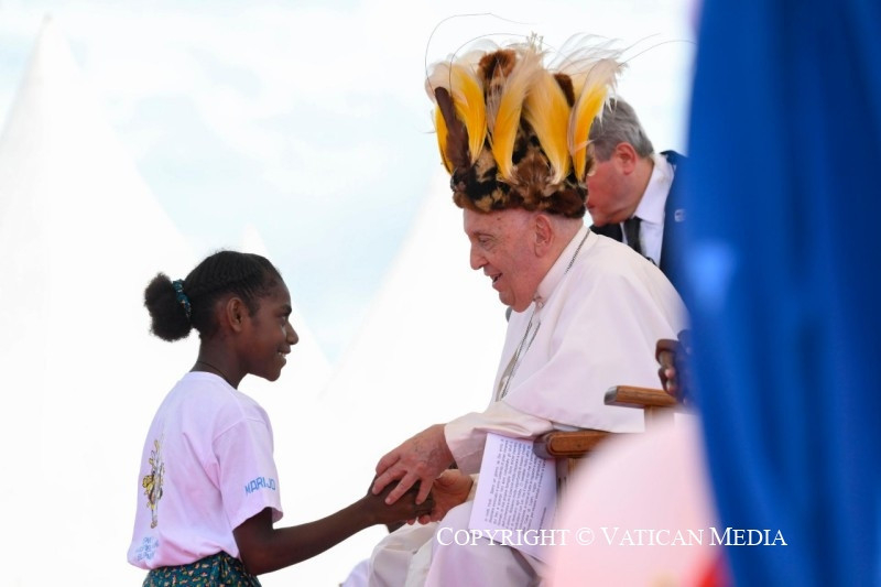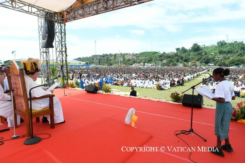 Ez a legértékesebb ajándék, amelyet megoszthattok és megismertethettek mindenkivel, és amely Pápua Új-Guineát nemcsak növény- és állatvilága változatosságáról, varázslatos tengerpartjairól és tiszta tengeréről teszi híressé, hanem mindenekelőtt az itt élő jó emberekről is. És ezt különösen nektek mondom, gyerekek, akiknek mosolya másokat is megfertőz és öröme minden irányba árad. Ti vagytok a legszebb kép, amelyet az innen távozók magukkal vihetnek és a szívükben őrizhetnek!