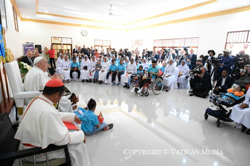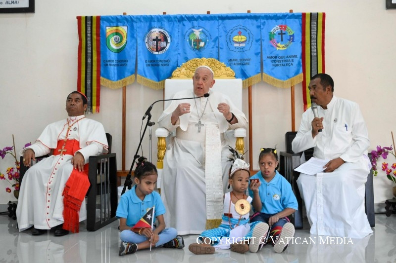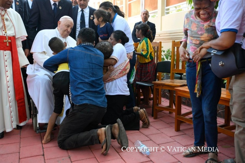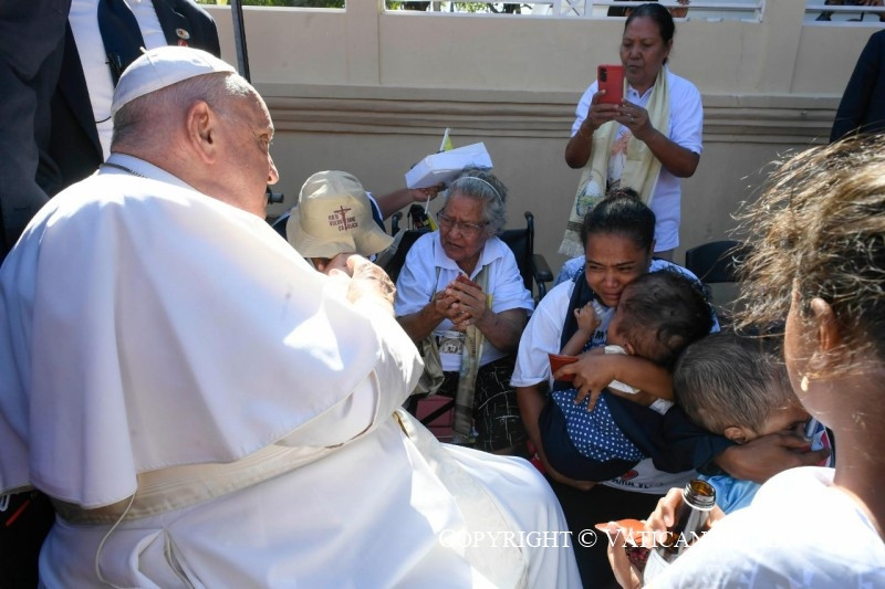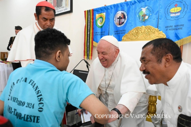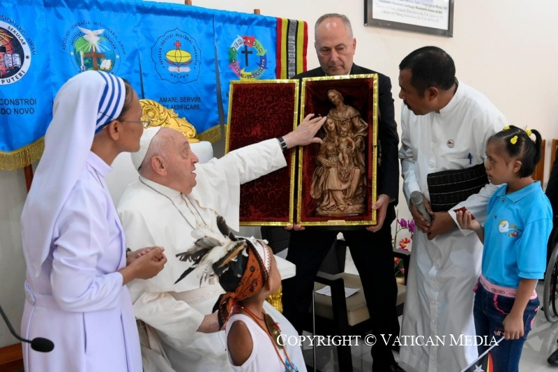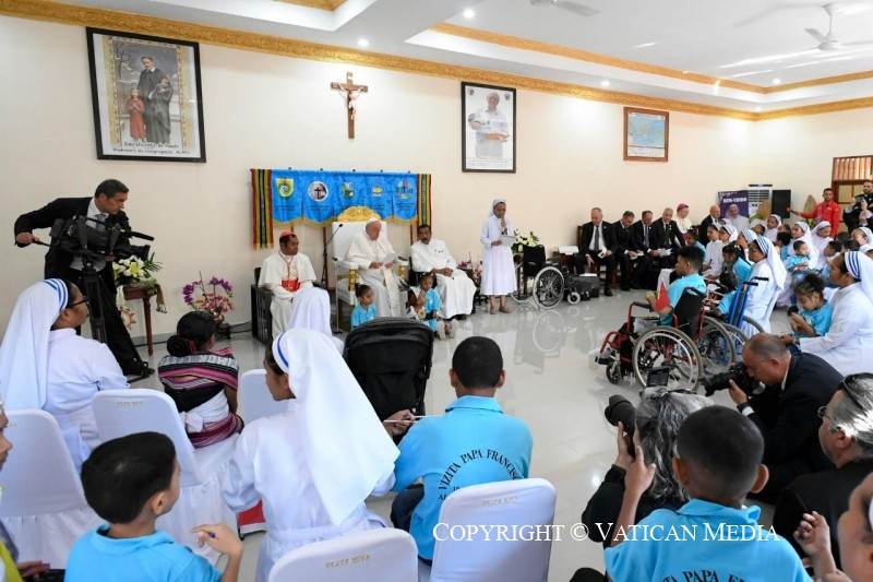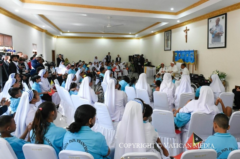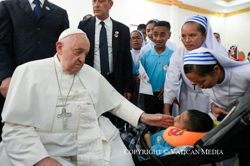 Az evangélium lapjai keltek életre azon a szeptemberi reggelen Dili városában az Irmãs Alma Házban, Ferenc pápa kelet-timori látogatásának második napján. Egy ‘60-as években Indonéziában alapított szervezet, a Világi Missziós Nővérek Intézményeinek Egyesülete évek óta gondoskodik itt fogyatékkal és súlyos betegséggel élő gyerekekről. Abban a fél órában, amit a Szentatya ott töltött, csupa mosoly volt mindenki, amikor a gyerekek közül többen spontán módon térdre borultak a pápa előtt; eluralkodott a megrendültség, amikor a súlyos degeneratív idegrendszeri betegségben szenvedő hétéves Silvanót megsimogatta; és nem maradt el a sírás sem, amikor kifelé menet üdvözölt egy elkeseredett anyukát, aki a karjában tartotta vízfejűségben szenvedő, értelmi fogyatékkal élő gyermekét.