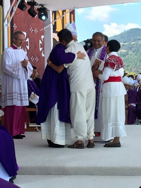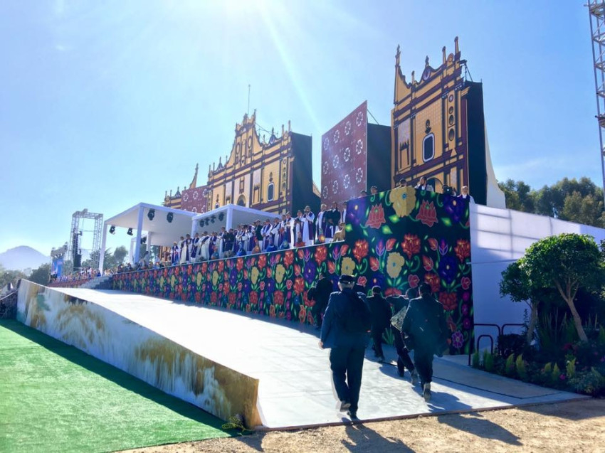 Ferenc pápa ebbe a kontextusba érkezett, hogy szentmisét mutasson be a San Cristóbal de las Casas-i stadionban. A szertartást három maja nyelven tartották: celtál, csol, cotzil nyelven.