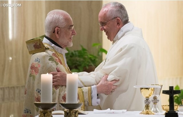 Kedves testvéreim! Nincsen kereszténység üldöztetés nélkül! Emlékezzetek a nyolcadik boldogságra – „Boldogok, akik üldözést szenvednek az igazságért, mert övék a mennyek országa” (Mt 5,10) –, amikor elvisznek titeket a zsinagógákba, üldöznek és szidalmaznak: ez a keresztény sorsa. És ma, mindazzal, ami a világban történik, amit oly sok hatalom cinkos hallgatása övez, melyek megállíthatták volna ezt a jelenséget, ez előtt a keresztény sors előtt állunk. Ugyanazt az utat járjuk, mint Jézus – hangsúlyozta a Szentatya.